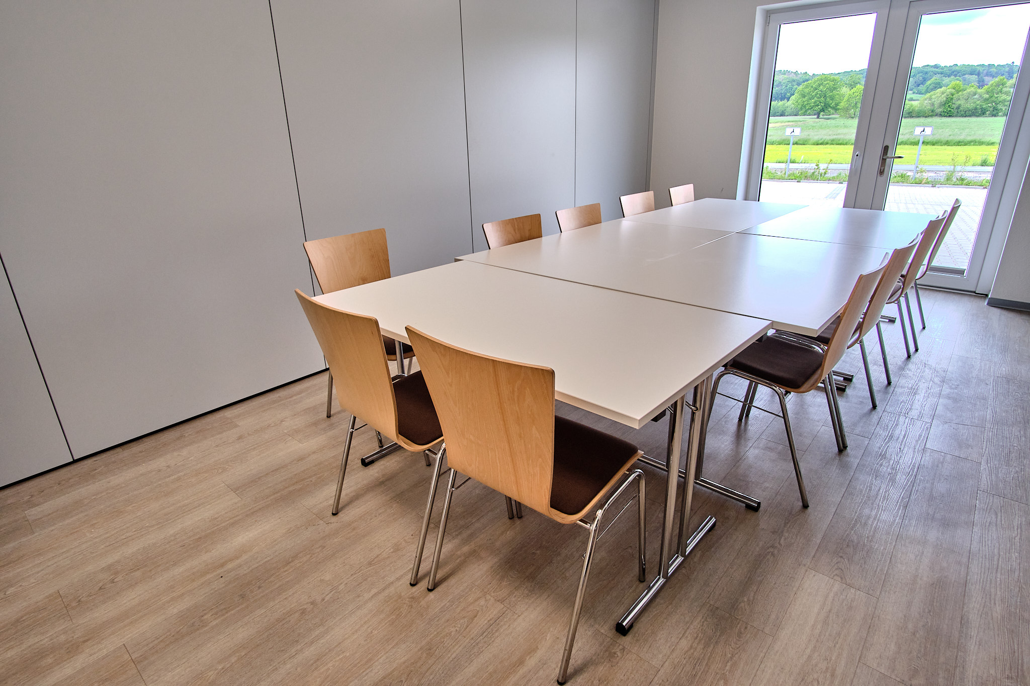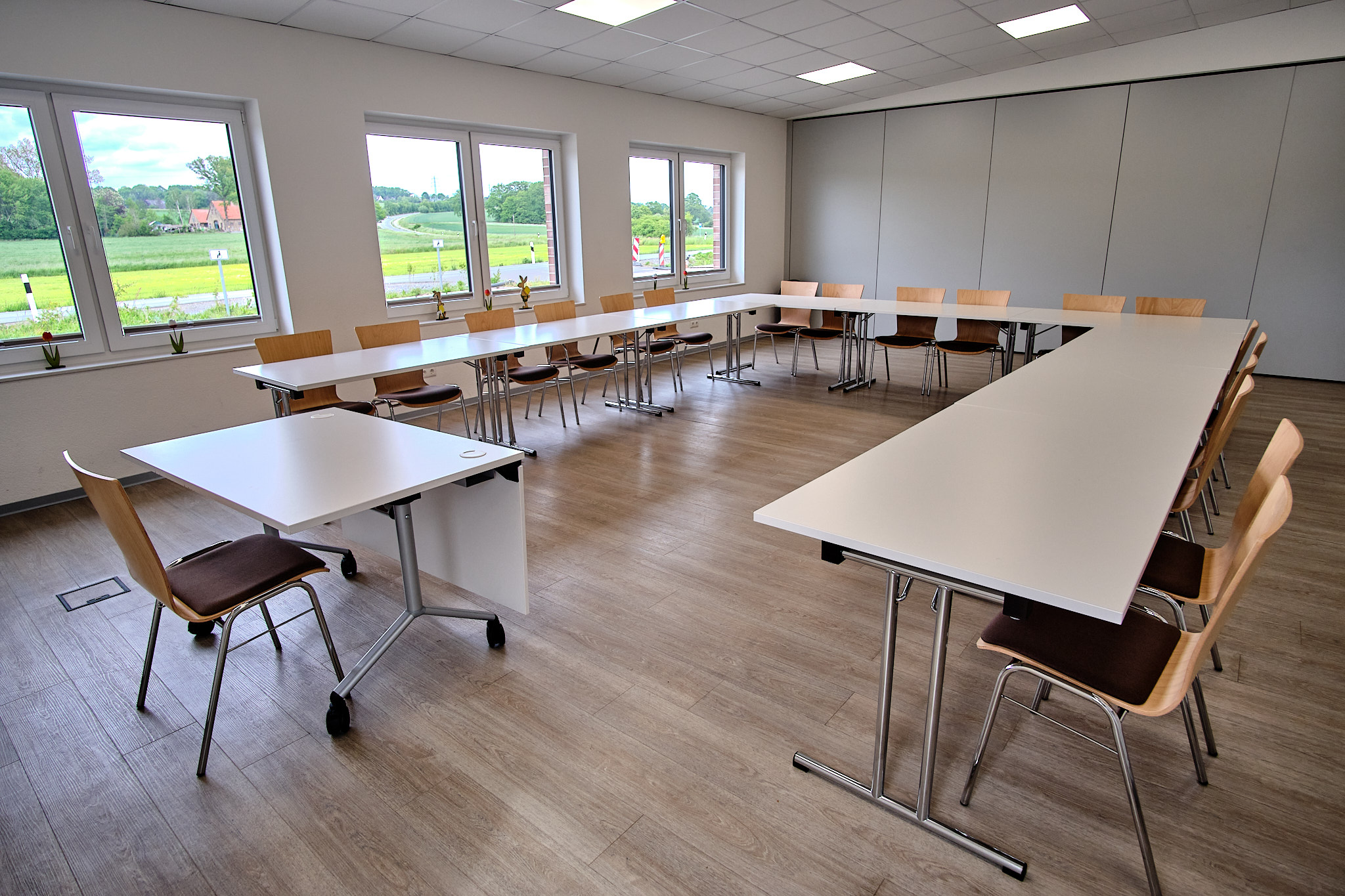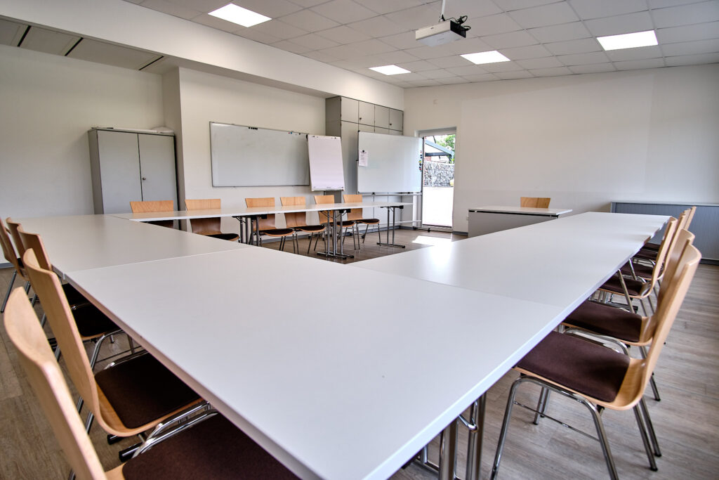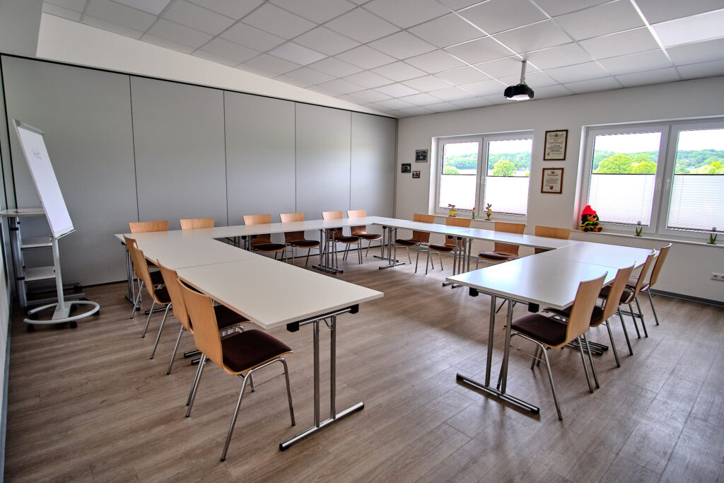 - Drei Seminarräume, die durch eine mobile Trennwand auf eine Gesamtgröße von 130m2 zu erweitert werden können